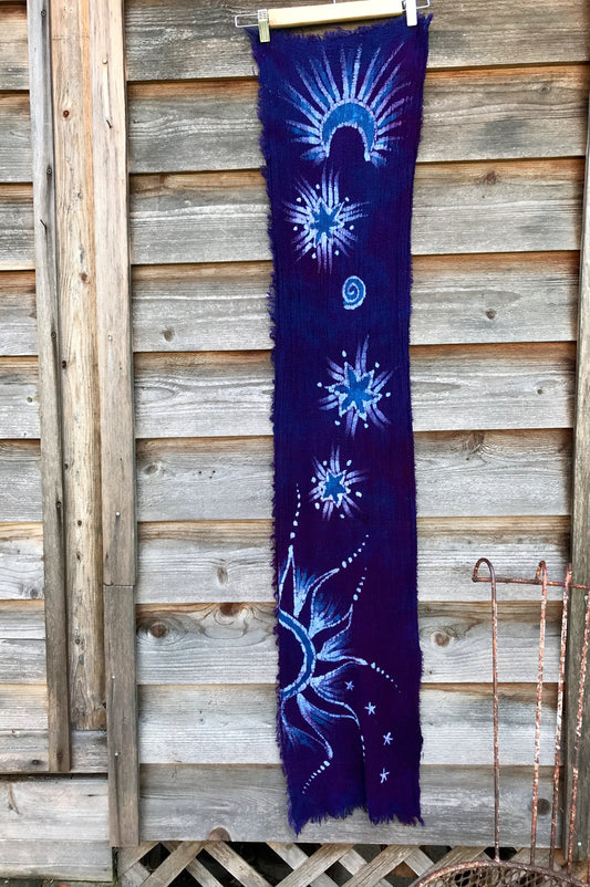 Midnight Moon & Stars Handmade Batik Scarf in Organic Cotton