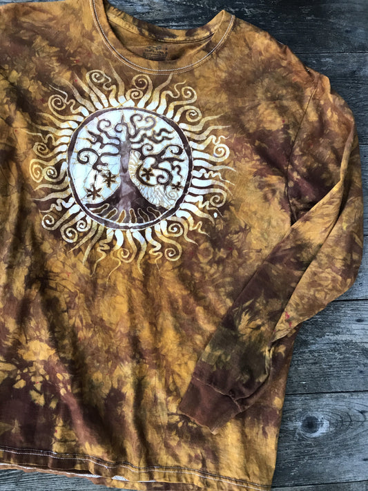 Gold Sun Tree Handmade Batik Long Sleeve Tshirt - Organic Cotton Size 3X