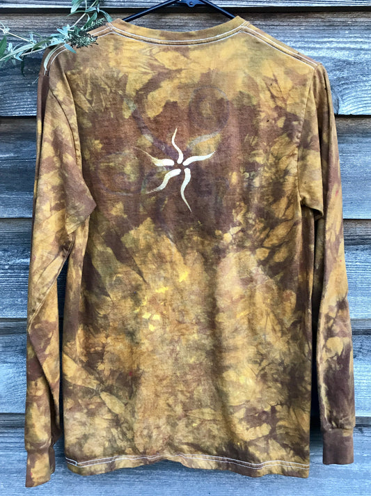 Gold Sun Tree Handmade Batik Long Sleeve Tshirt - Men's Small