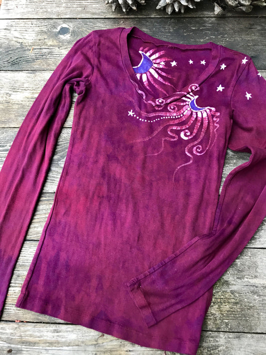Berry Moon Batik Long Sleeve Vneck Top