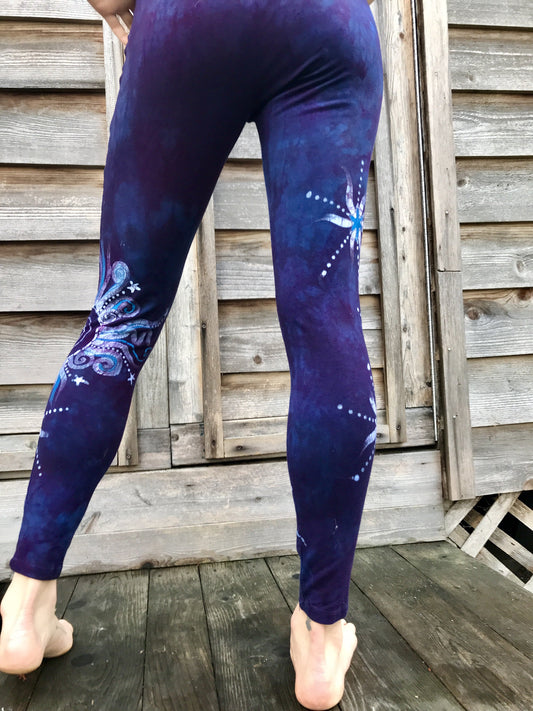 Deep Purple and Turquoise Moon and Star Batik Leggings - Size XL