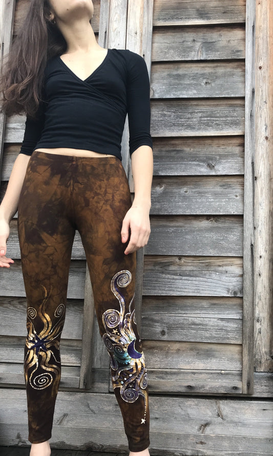 Dark Gold and Purple Sun Stars Batikwalla Leggings