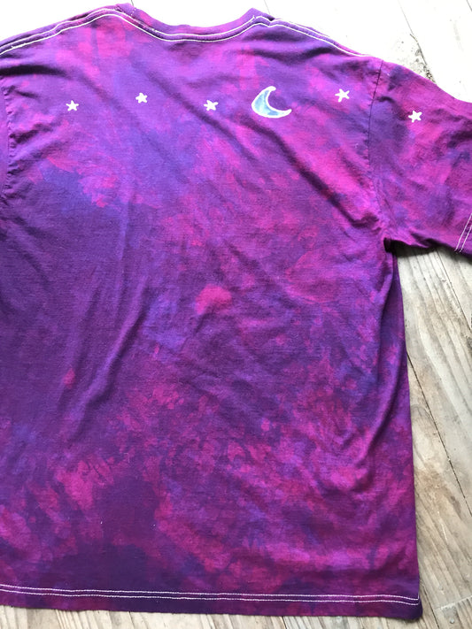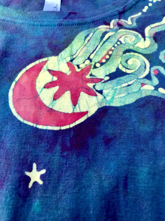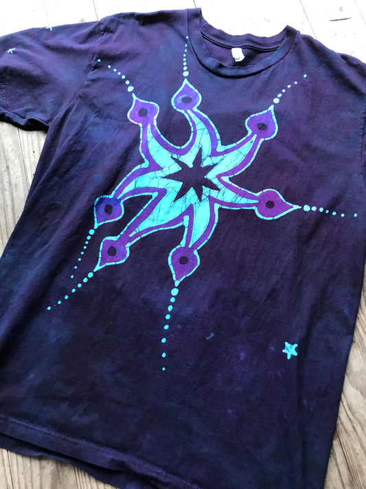 Deep Purple and Turquoise Star Handmade Batik Tshirt - Size XL