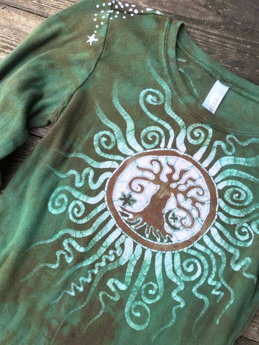 Green Tree Sun Handmade Long Sleeve Batik Top