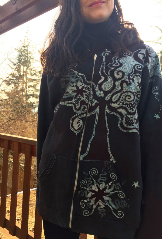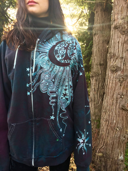 Midnight Moon Tree Organic Batik Hoodie