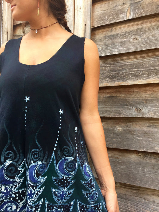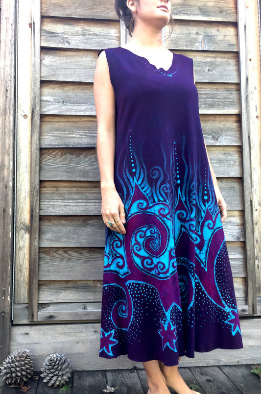 Deep Blue and Purple Sea Of Dreams Organic Cotton Batik Dress - Plus Size