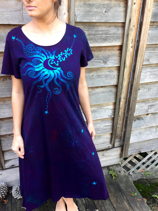 Deep Purple Moondance - Short Sleeve Batik Dress