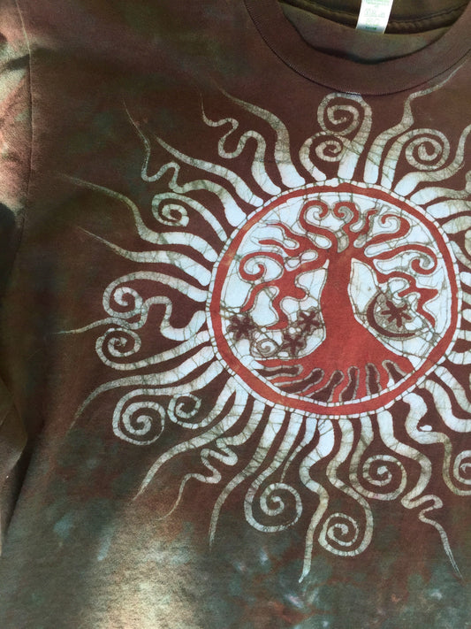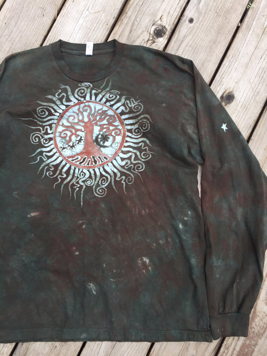 Teal Tree Long Sleeve Batik Mens Tshirt - Size Large