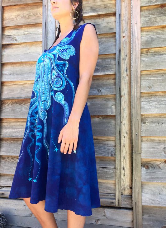 Teal and Purple Moonbeams Organic Cotton Batik Dress