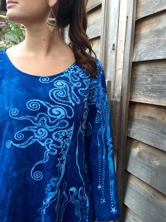 Moon Star Sunrise Long Sleeve Batik Tunic Top