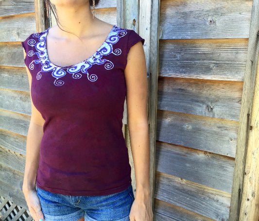 Teal and Purple Tree of Life Organic Tshirt - Batik Print
