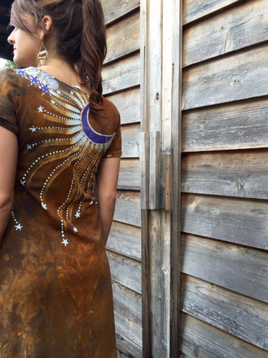 Moonlight Moss Tree of Life Organic Cotton Batik Dress