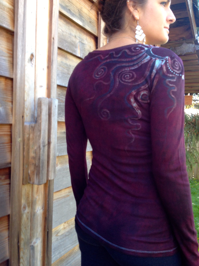 Deep Blue and Purple Moon Star Handmade Batik Vneck Top