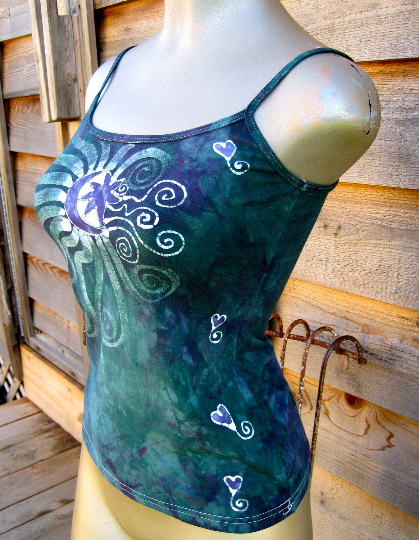 Misty Meadows Moon Star Handmade Batik Vneck Top