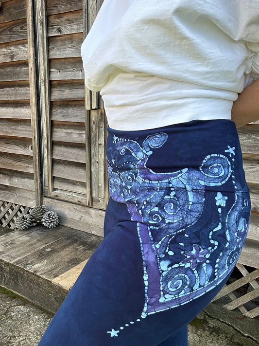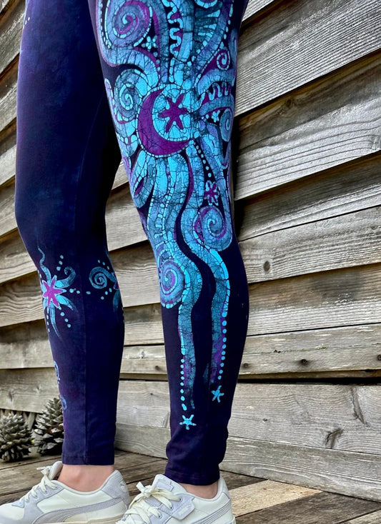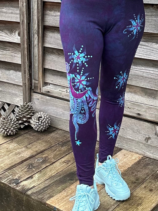 Deep Purple and Turquoise Moon and Star Batik Leggings - Size MEDIUM