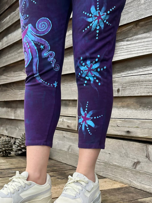Purple and Turquoise Moon Star Batik Leggings - Size XL Mid Length