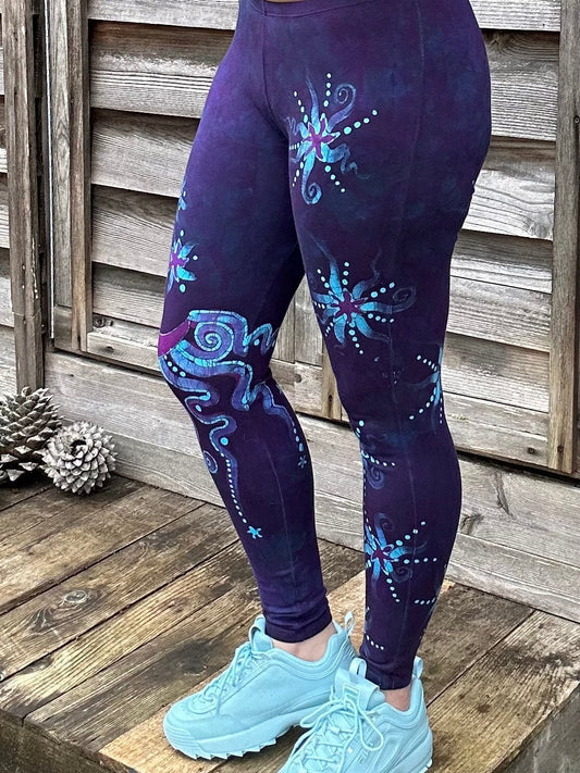 Deep Purple and Turquoise Moon & Star Batik Leggings - Size XS