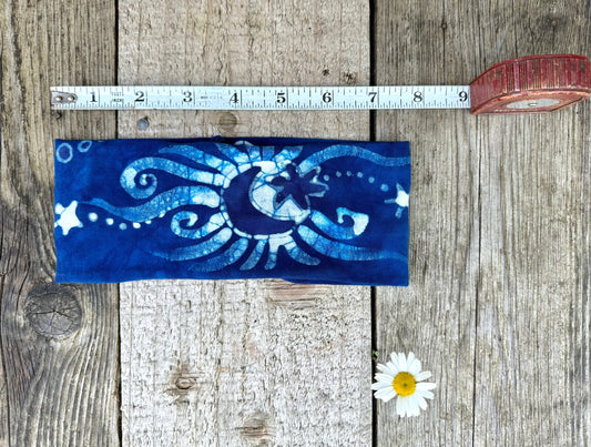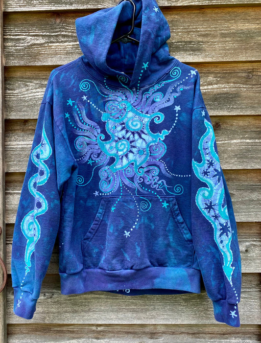 Aqua Serene Moon and Stars - Handcrafted Batik Pullover Hoodie - Size SMALL Unisex