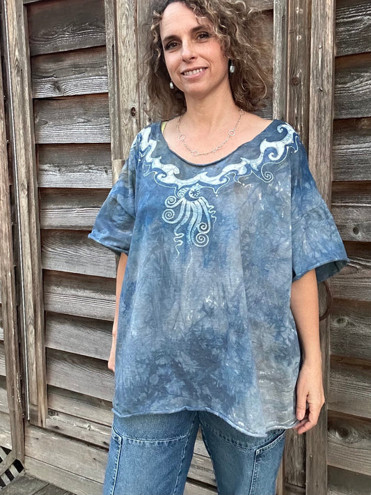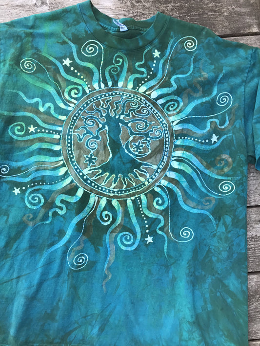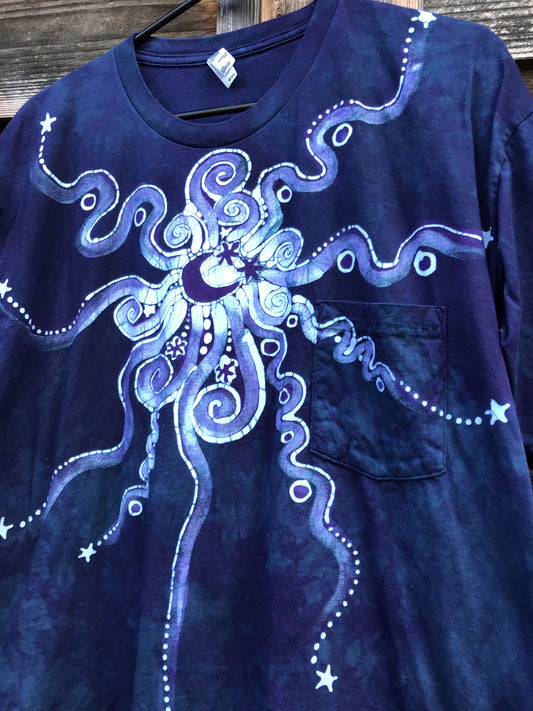 Teal and Purple Octopus Starburst Hand Painted Batik Tshirt