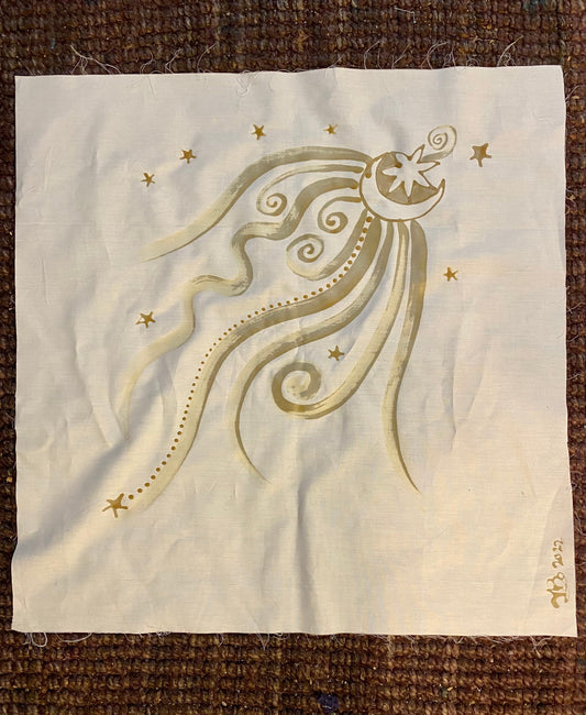 Dark Gold and Purple Moonbeams Handmade Batik Scoop Neck Top