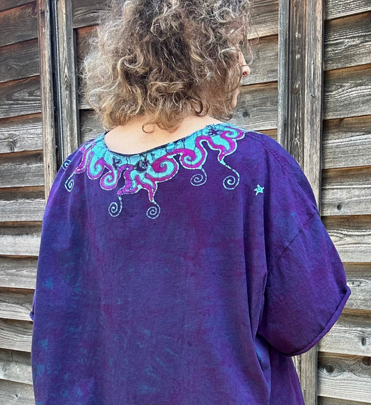 Purple Octopus Moonbeams – Handmade Batik T-shirt by Victoria Batikwalla