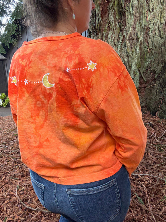 Safety Orange Batik Star Long Sleeve Batik T-Shirt