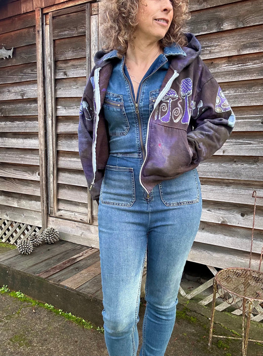 Purple Woodland Mushroom Hunter Handmade Batik Hoodie - 2X Unisex