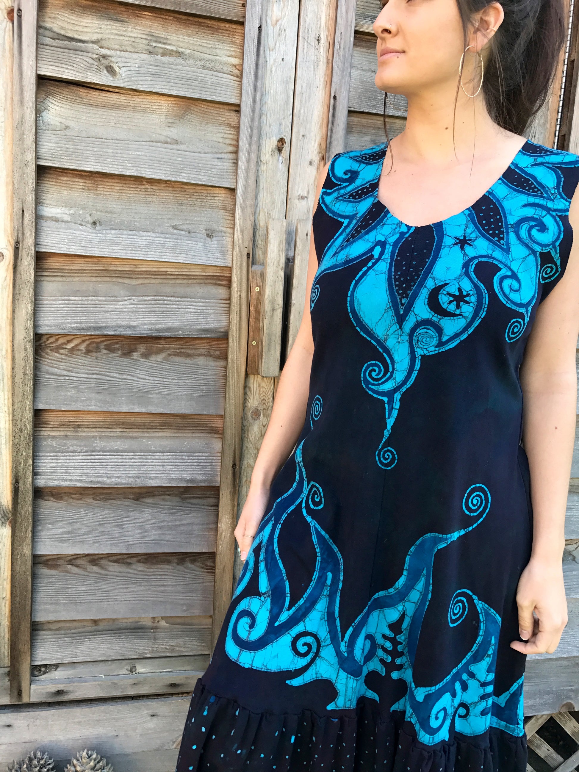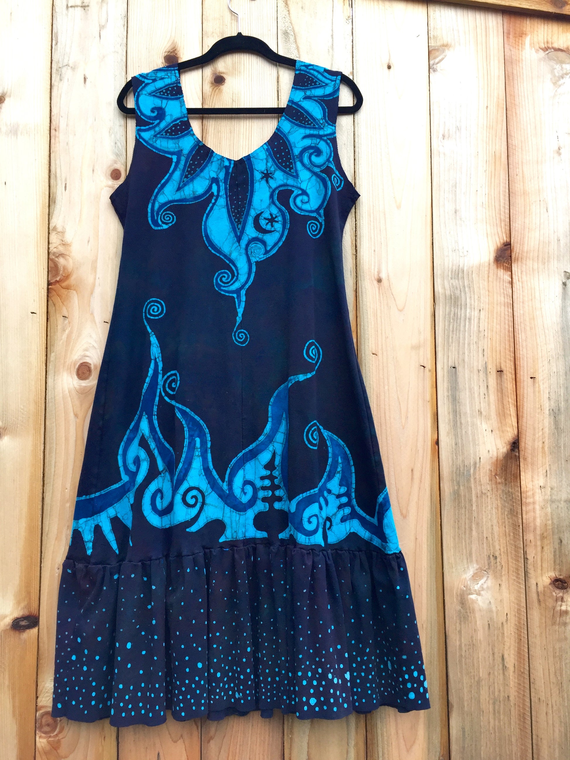 Blue Lotus Moon Dress - Size Large/XL - Organic Cotton - completely handmade from start to finish.