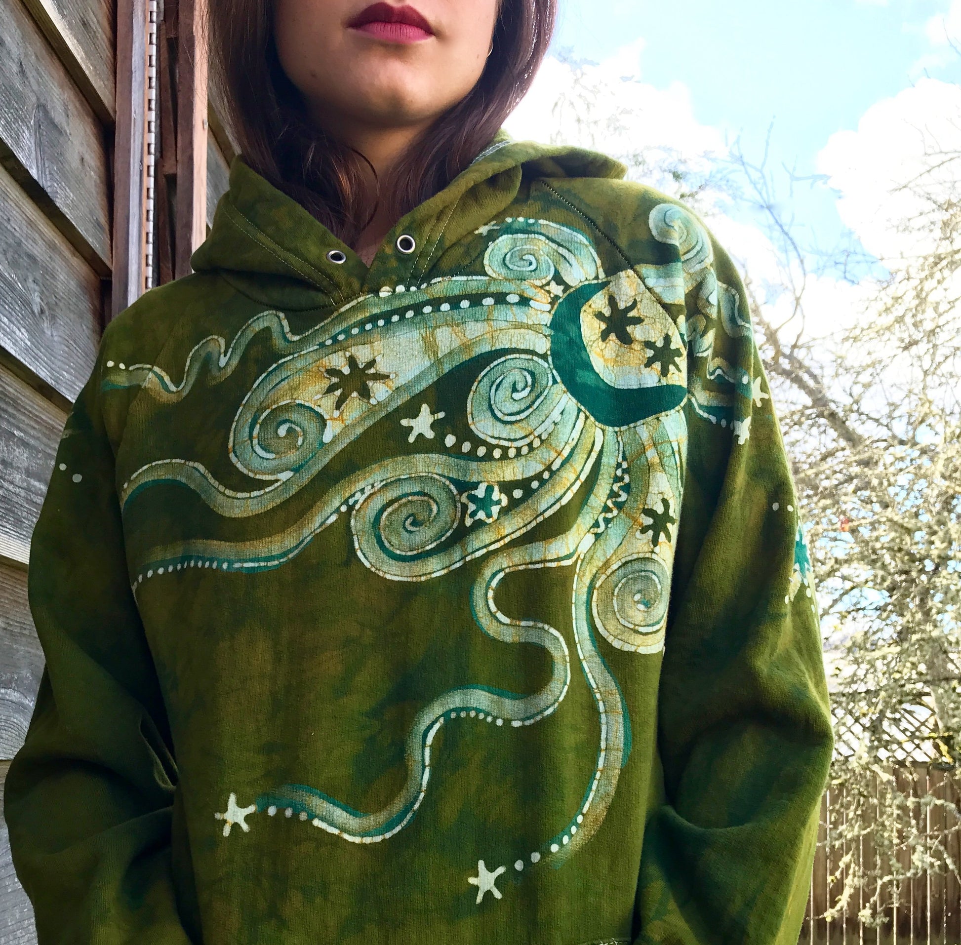 Dancing Green Moonbeam Meadow - Organic Cotton Batikwalla Hoodie