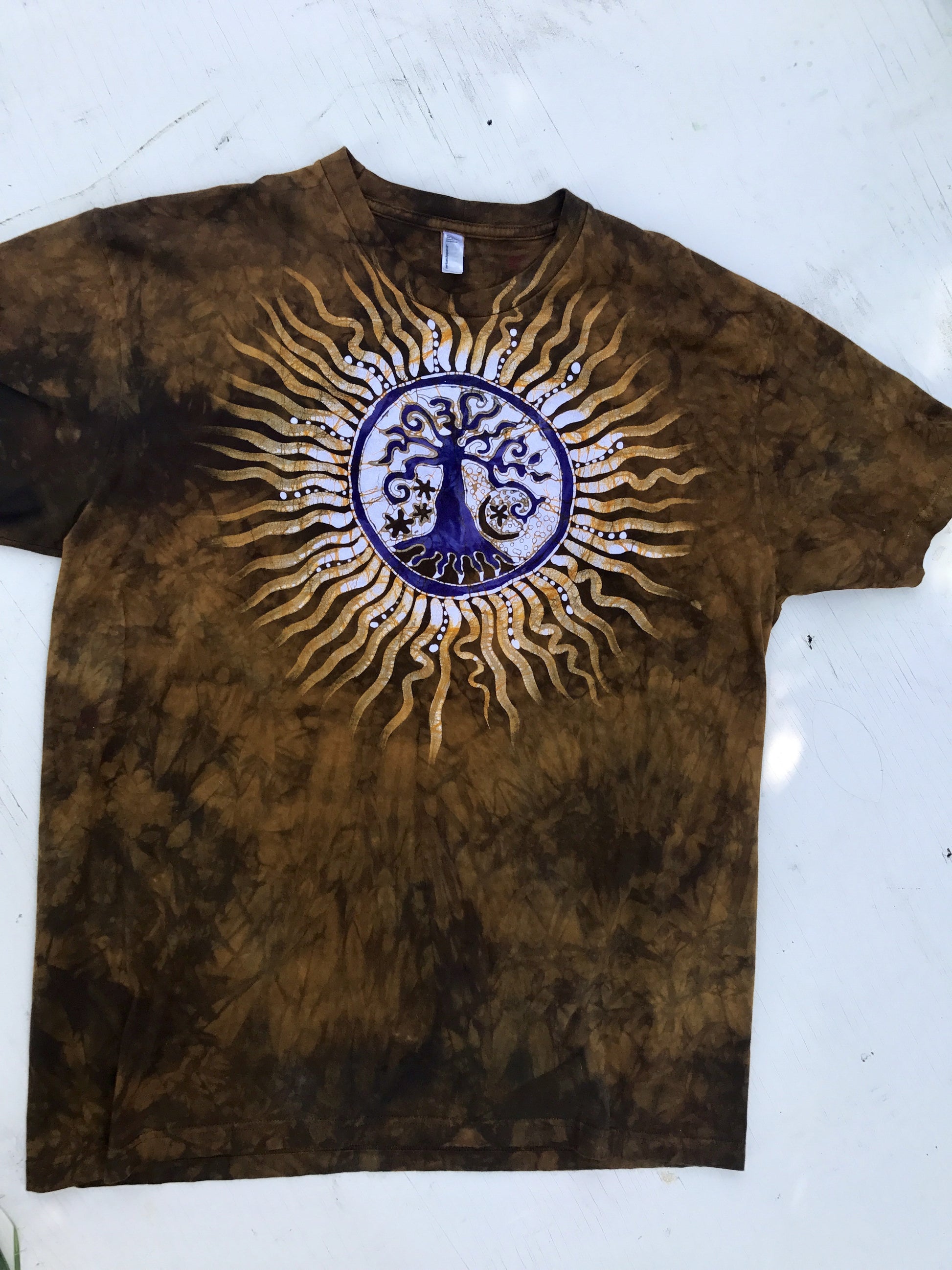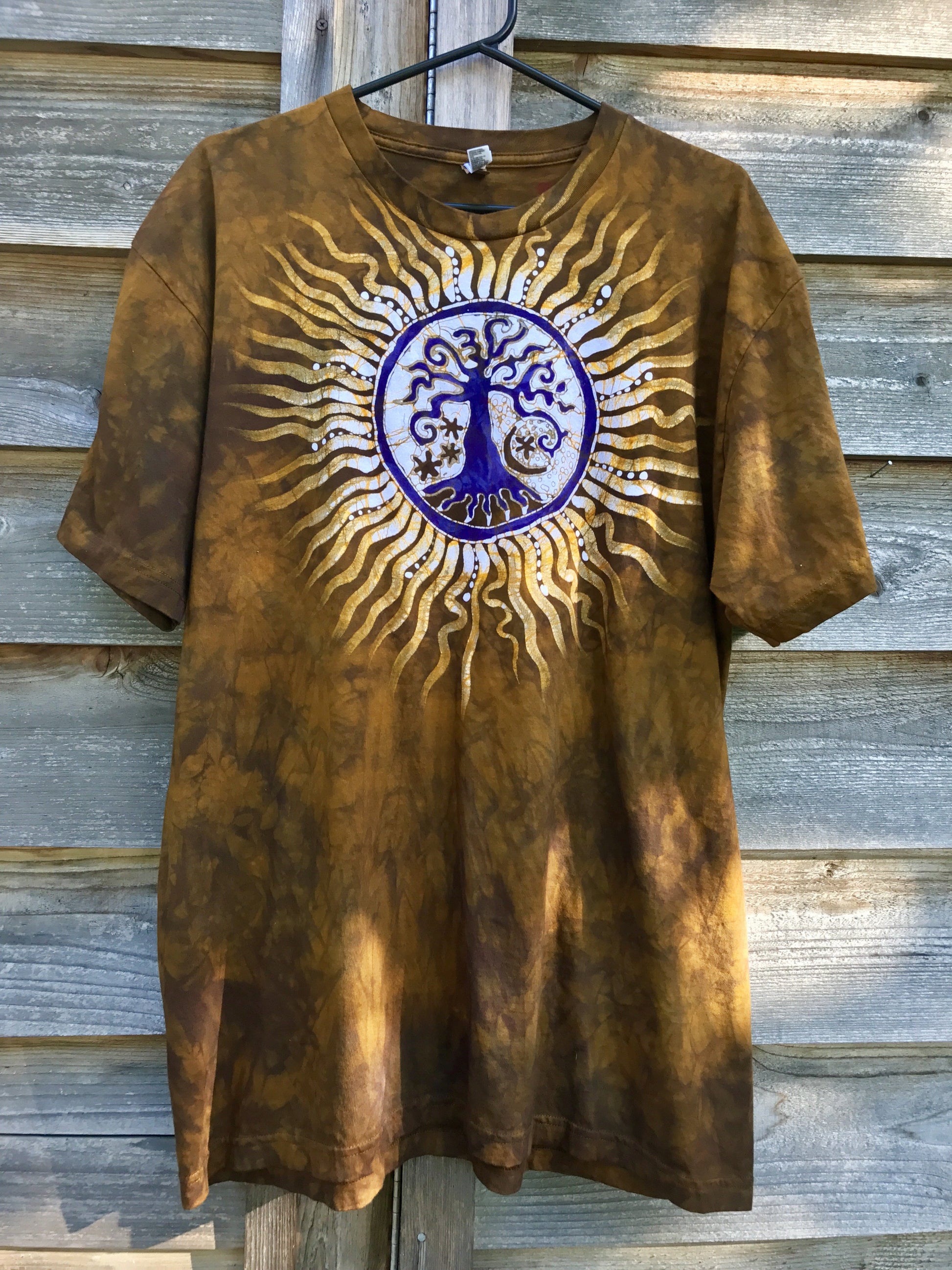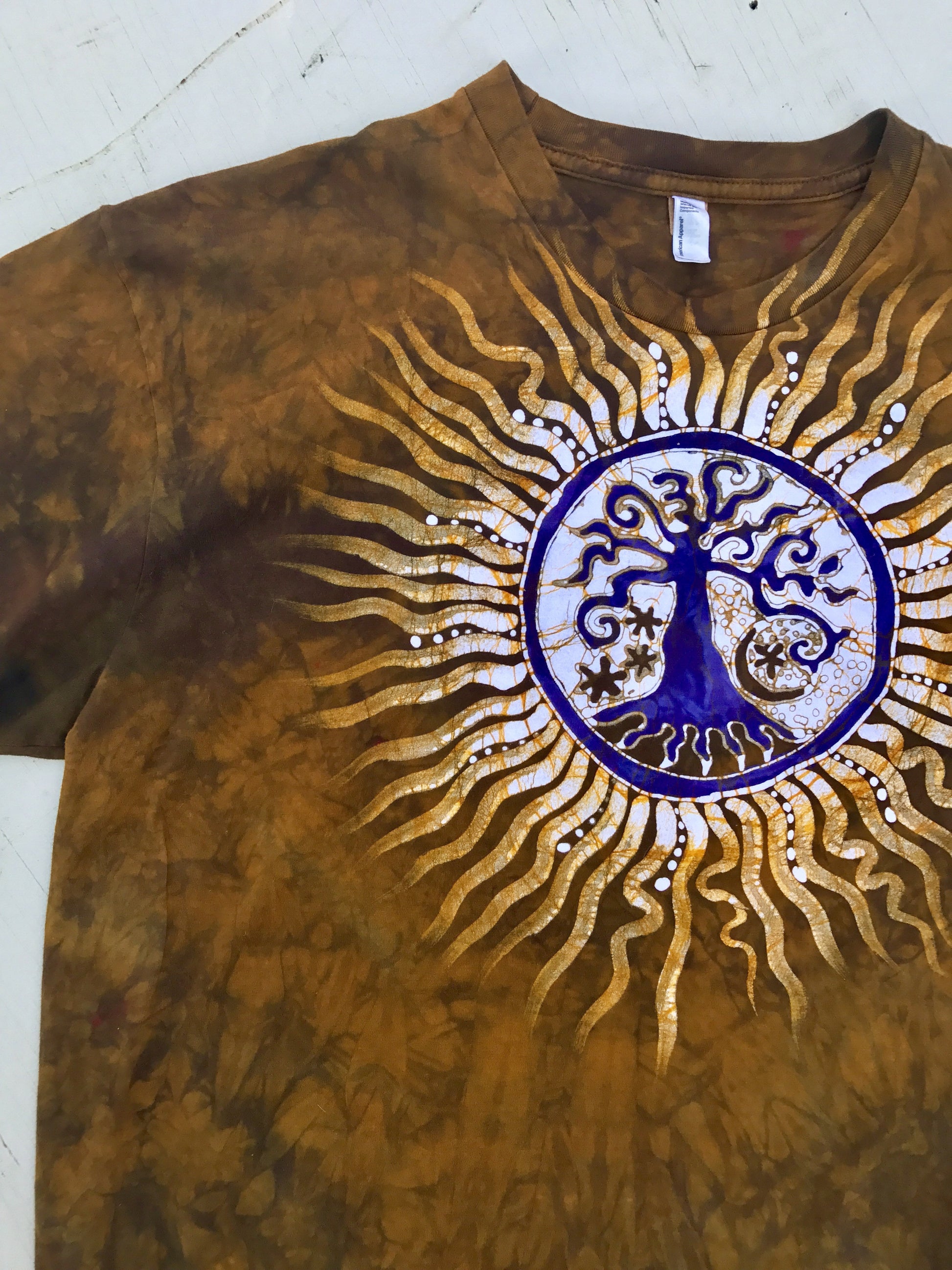 Sunshine Gold and Purple Tree Handmade Batikwalla Tshirt - Size 2X