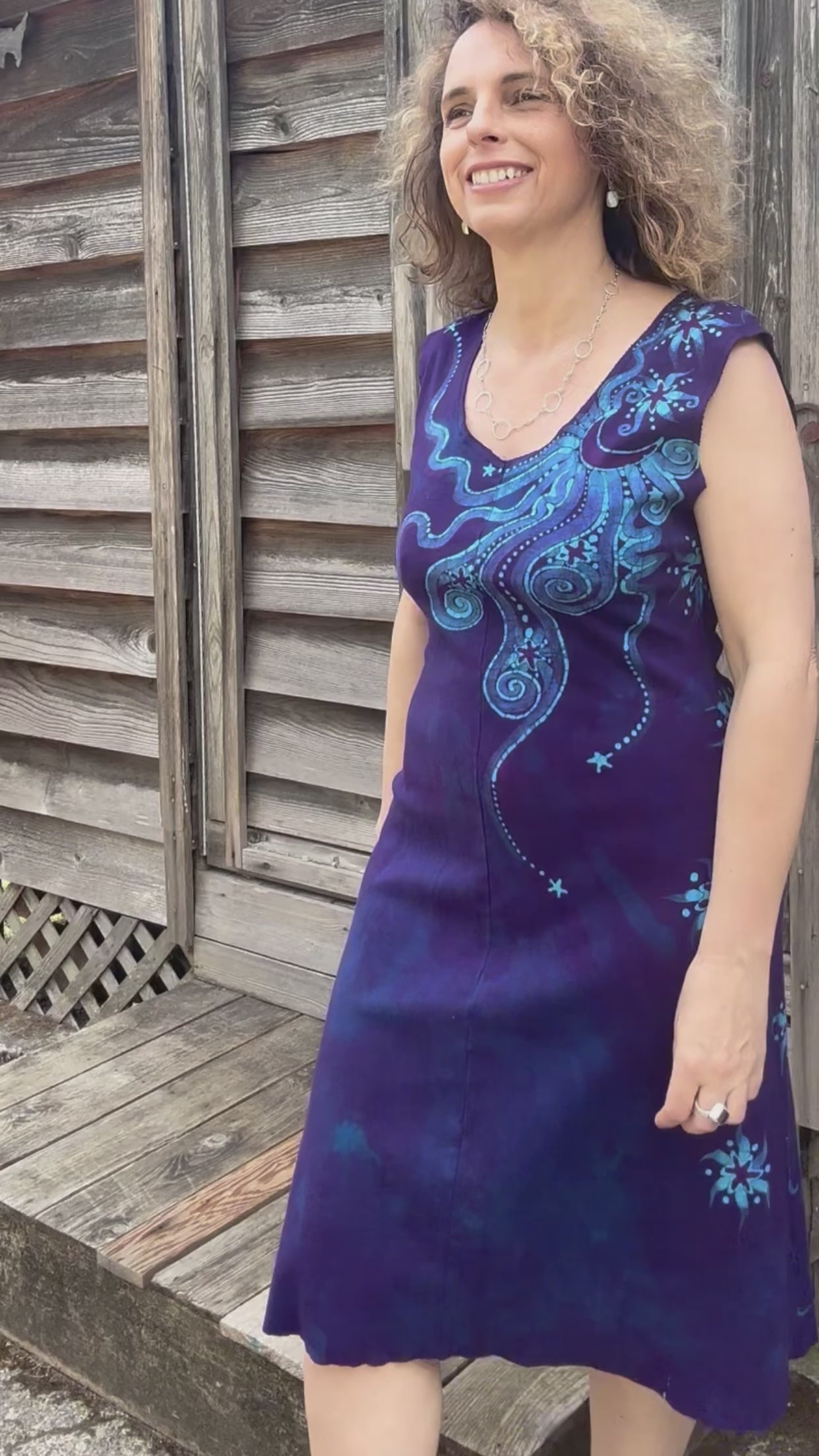 Sweet Night Moonlight Organic Cotton Batik Dress - colors are mixed blue-purple and sky blue.