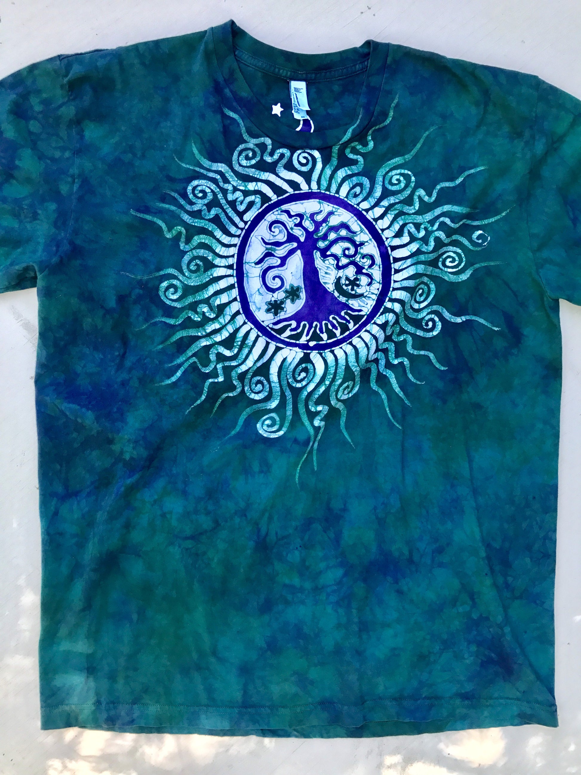 Teal and Purple Tree Handmade Batikwalla Tshirt - Size 2X
