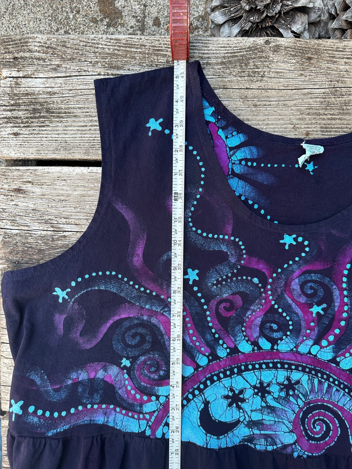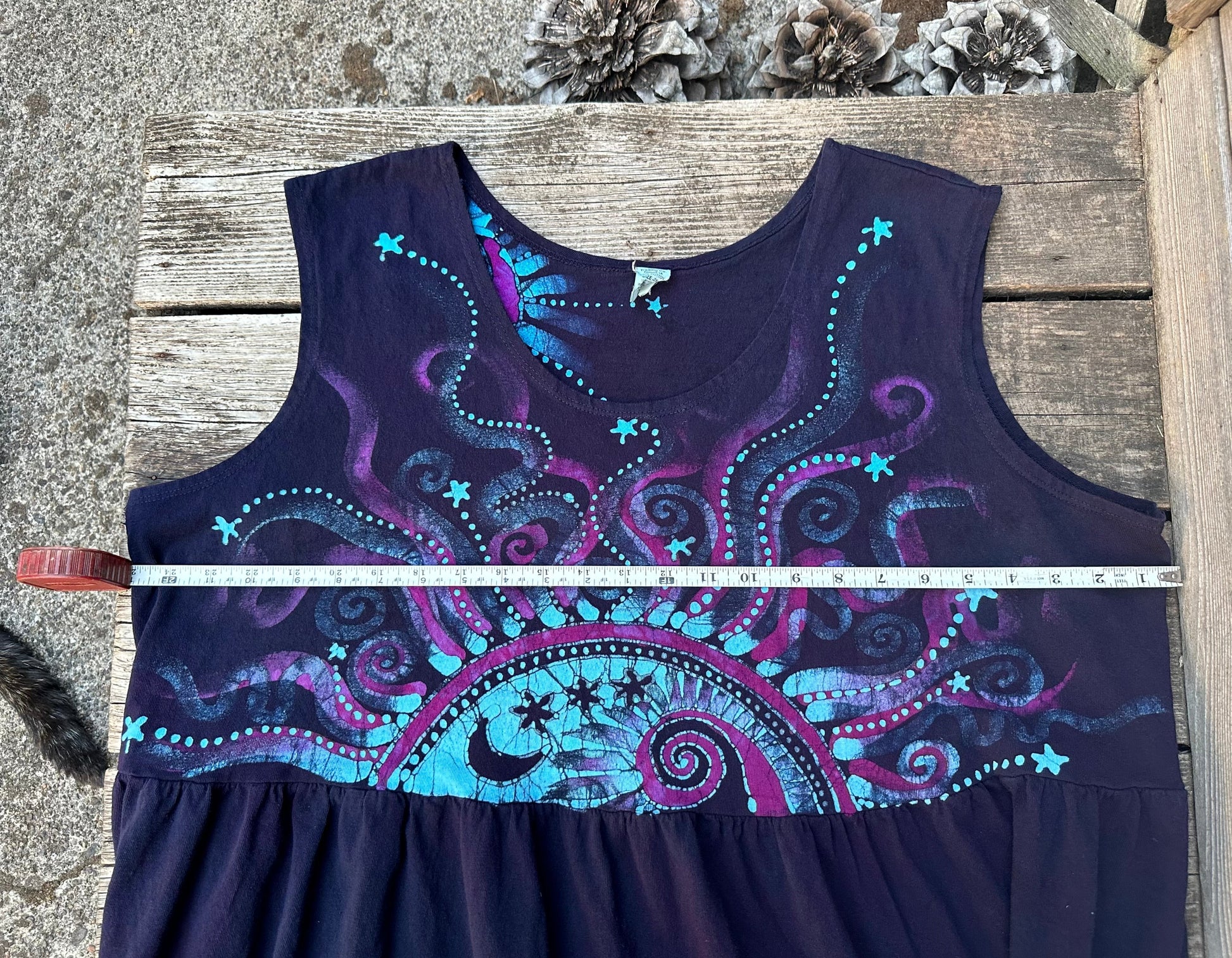 This batik dress was hand painted and hand dyed in layers to create this beautiful design. All sizes in this collection can be found here: Batik Dresses